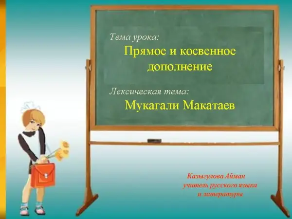 Урок проходит в творческой мастерской, в которой ученики проводят лингвистический эксперимент, используя знания русского, английского и казахского языков. Особенность урока в том, что учитель не называет новую тему, ученики сами, работая с примерами, делают выводы, определяют тему урока. На уроке учащиеся знакомятся с жизнью и творчеством казахского поэта Мукагали Макатаева.