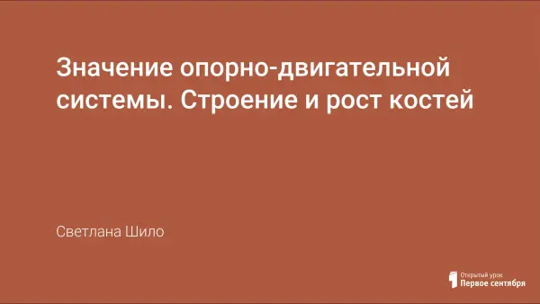 Цель урока: познакомить учащихся с ролью опорно-двигательной системы человека, раскрыть особенности строения и химического состава костей. Показать взаимосвязь строения костей с выполняемой ими функцией. Выяснить, за счет чего происходит их рост.