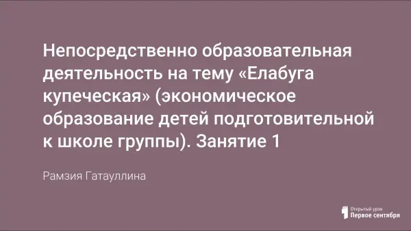Образовательная деятельность направлена на экономическое образование детей подготовительной группы. Занятие знакомит с деятельностью известных елабужских купцов, оставивших яркий след в истории города Елабуга, воспитывает уважение к ним.
