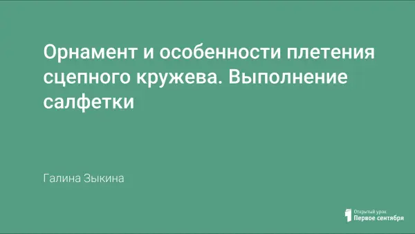 Цель занятия: расширить знания о технике плетения кружева.
