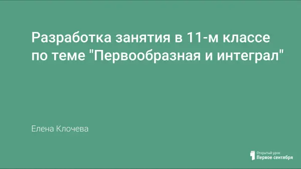 Основная цель занятия заключается в ознакомлении учащихся с понятиями первообразной и интеграла, формировании умения находить площадь криволинейной трапеции в простейших случаях.