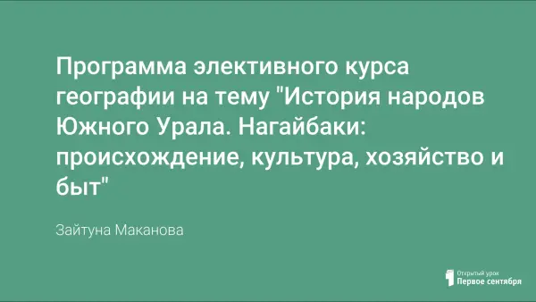 Программа предусматривает более детальное изучение истории происхождения нагайбакского народа, их материальной, духовной и традиционной культуры, содержит анализ материалов экспедиционных выездов и полевых исследований. Программа элективного курса построена таким образом, что учащиеся приобретают использование метода проектной технологии в изучении предмета краеведение в общеобразовательном учреждении.
