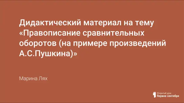 Сравнительный оборот – часть предложения, состоящая из словоформы существительного, прилагательного или наречия – одиночной или с зависимыми словами, которая вводится сравнительными союзами как, что (устар.), чем, нежели, как и или союзами, придающими сравнению модальную окраску, – словно, точно, будто, как будто (бы), словно как. Сравнительный оборот вносит в предложение дополнительное значение, поэтому он, как правило, обособлен. Обособленный сравнительный оборот занимает в предложении относительно самостоятельное и свободное положение: находясь в начале, конце или середине предложения, он соотносится со всей его предикативной частью. Сравнительный оборот с собственно сравнительным значением имеет ярко выраженную стилистическую функцию: наряду с метафорой он относится к числу образных средств языка и используется преимущественно в художественной речи, особенно в поэзии. Сравнительные обороты являются частотными и у А.С.Пушкина. На примере его произведений возможно изучение и повторение правописания сравнительных оборотов на уроках русского языка.
