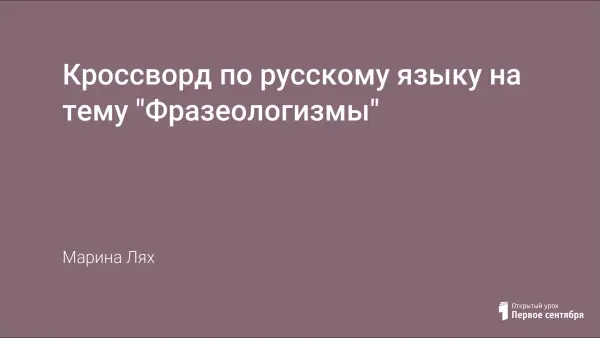 Кроссворд предназначен для уроков и внеклассных мероприятий по русскому языку на тему «Фразеологизмы» в 5-м классе. Проверяется знание известных фразеологизмов.