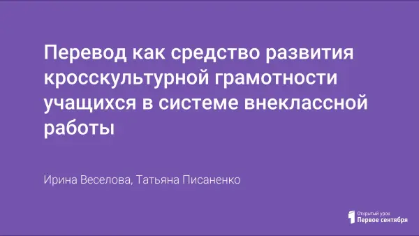 Перевод как средство развития кросскультурной грамотности учащихся в системе внеклассной работы