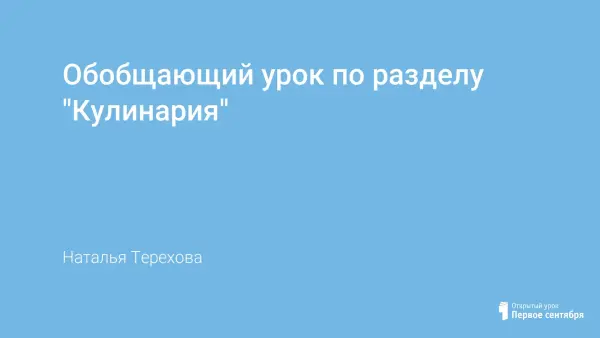 Представленный урок с элементами интерактивности поможет учителю организовать обобщающий урок по закреплению раздела "Кулинария".