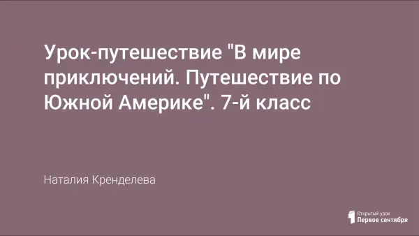 Урок «В мире приключений. Путешествие по Южной Америке» – это урок обобщающего повторения по географии. В занимательной форме представлены все разделы данной темы. Данный урок рассчитан на учащихся 7-го класса, которые изучают предмет по любым линиям учебника.