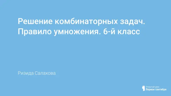 Урок математики в 6-м классе на формирование умения анализировать, обобщать и систематизировать, решая комбинаторные задачи по правилу умножения. На уроке учащиеся должны закрепить умение решать задачи такого типа с помощью геометрической модели – «дерева» всевозможных вариантов. Урок содействует воспитанию культуры речи, внимания и собранности, развитию трудовых и эстетических качеств, учит ставить перед собой проблему и находить пути ее решения.