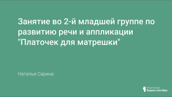 Занятие знакомит детей с русской народной игрушкой – матрешкой, развивает детское творчество аппликацией. Дети учатся воспроизводить простые элементы узора на квадрате.