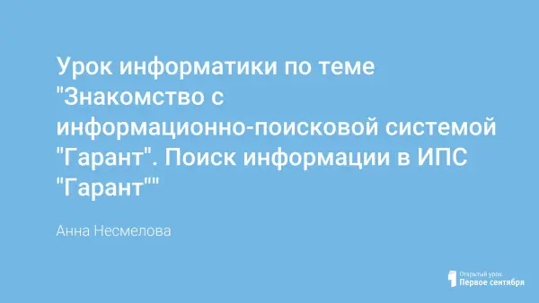 Урок по теме "Информационно-поисковые системы" знакомит учащихся с основными приемами работы в правовых системах на примере ИПС "Гарант". Умение находить нужную информацию понадобится им для дальнейшего применения в будущей профессии.