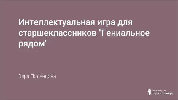 Интеллектуальная игра предназначена для учащихся 9–11-х классов, цель которой – пробудить интерес к истории гениальных открытий человечества, к окружающему нас миру. В процессе подготовки презентаций учащиеся учатся подавать информацию актуально, сжато, познавательно. Игра позволяет выявить наиболее эрудированных учащихся, сделать неформальный срез знаний учащихся по предметам естественно-научного цикла (физика, химия, биология, математика).