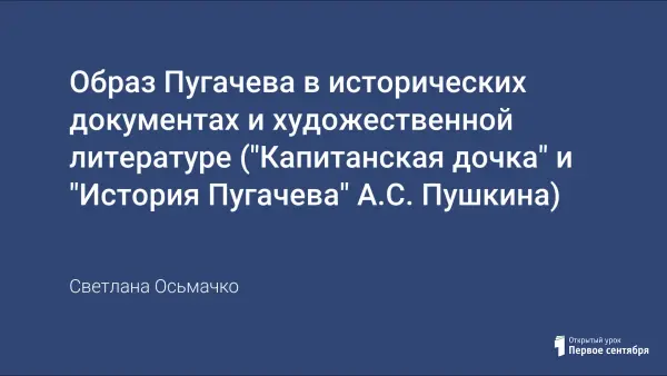 Автор знакомит учащихся с Пугачевым как с исторической личностью, как с литературным персонажем, с внешностью героя, опираясь на исторические хроники, "Капитанскую дочку" А.С. Пушкина, на иллюстрации, на энциклопедические статьи; выявление причин самой крупной крестьянской войны (опора состава участников на исторические документы, на "Историю Пугачёва" А.С. Пушкина).