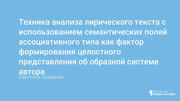 Техника анализа основана на принципе системности образного строя лирического произведения и предполагает работу с текстом на лексическом уровне с целью идентификации авторской «модели мира». Такой подход способствует развитию навыков целостного восприятия художественного произведения. Наиболее эффективным было бы её применение на уроках, имеющих своей целью обобщение творчества автора (лирических циклов и тем), выявления элементов образной системы какого-либо поэта.