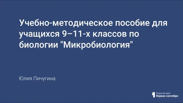 Учебно-методическое пособие для обучающихся 9–10-х классов и учителей-предметников «Микробиология» создано на основе стандартной версии программы PowerPoint. Пособие было разработано как сопровождающий справочный, дополнительный материал к серии уроков по темам 9–10х классов «Возникновение жизни на Земле», «Учение о клетке».