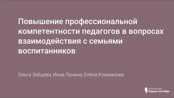 Повышение профессиональной компетентности педагогов в вопросах взаимодействия с семьями воспитанников
