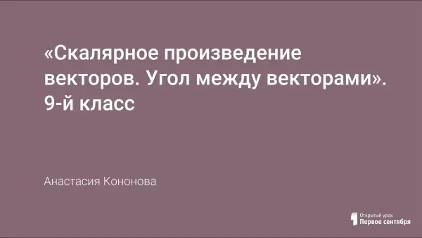 Урок формирует у учащихся 9-го класса понятие «скалярное произведение векторов», «угол между векторами»; готовит к основному государственному экзамену по математике (ОГЭ), воспитывает ответственность, организованность, самостоятельность.