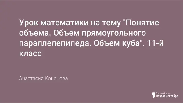 Данный урок нацелен на закрепление понятия объема, объема прямоугольного параллелепипеда и объема куба; способствует формированию навыков нахождения объема прямоугольного параллелепипеда и объема куба; способствует подготовке к Единому государственному экзамену по математике, воспитанию чувства ответственности, организованности, самостоятельности.