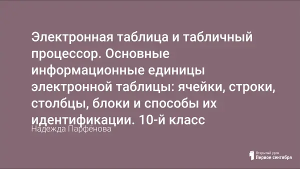 На занятие «Электронная таблица и табличный процессор» выделено 2 учебных часа. Для проведения лекционного занятия используются педагогические технологии Критического мышления «Вызов – Осмысление – Размышление».