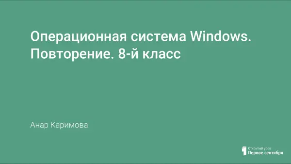 Повторение с учащимся назначения и состава операционной системы компьютера Windows. Урок базируется на знаниях, полученных учащимися в 7-м классе.