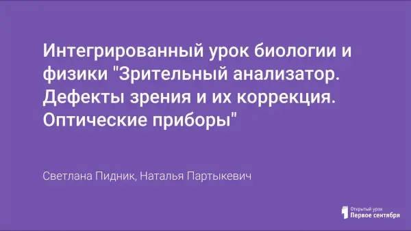 Интегрированный урок биологии и физики "Зрительный анализатор. Дефекты зрения и их коррекция. Оптические приборы"