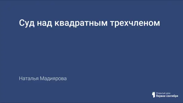Внеклассное мероприятие можно проводить в рамках недели, декады математики в форме конференции с приглашением обучающихся 8–11-х классов. Чтобы конференция прошла интересно, ребятам предлагается в игровой форме, в форме суда, раскрыть знания по теме "Квадратный трехчлен", показать особенности квадратного трехчлена, квадратных уравнений, рассказать о 10 способах решения квадратных уравнений и показать решения пяти способов, которые не применяются в школьном курсе математики.