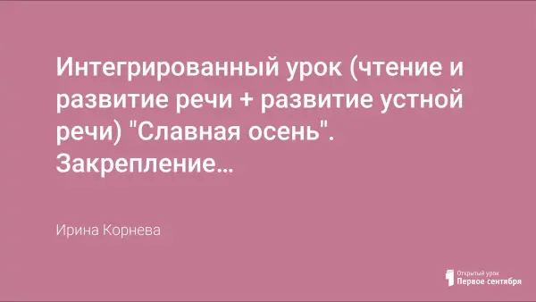 Использование интегрированных уроков усиливает возможность образовательного процесса по компенсации дефектов умственно отсталых детей. Данный интегрированный урок для повышения эффективности планировался и выстраивался так, чтобы изучение темы по чтению «Славная осень!» совпало по времени с изучением темы «Изменения в природе, жизни растений и животных» по развитию устной речи на основе изучения предметов и явлений окружающей действительности.