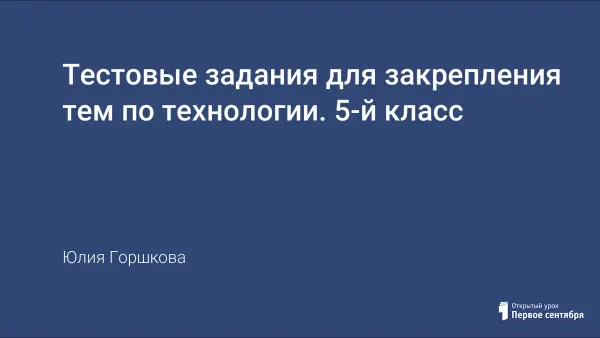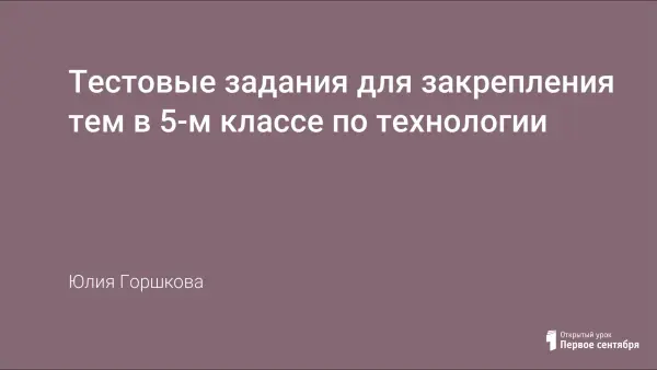 Урок содержит задания для текущего и итогового контроля базовых знаний и умений учащихся по технологии. Помогает систематизировать и обобщать теоретические знания, закрепить практические умения.