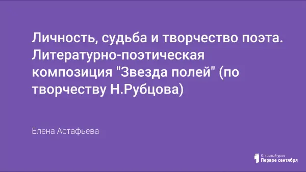 Цель урока: познакомить учащихся с жизнью и творчеством Николая Рубцова – известного русского поэта, поэзия которого продолжается в музыке, вызвать интерес к лирике поэта.