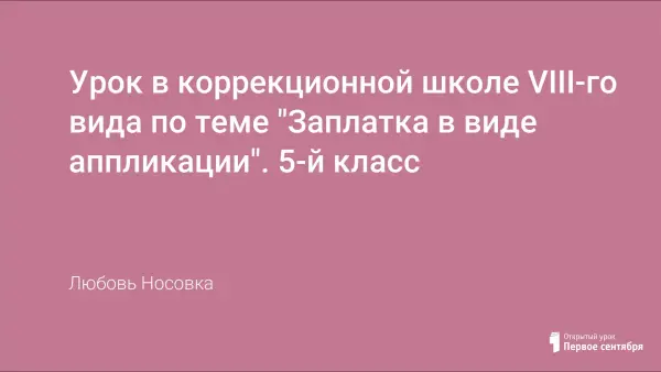 Урок расширяет знания учащихся о видах ремонта, знакомит с техникой аппликации для заплаток. Учит учащихся работать по плану. Развивает мышление, пробуждает активность, вызывает положительные эмоции, интерес к профессии.