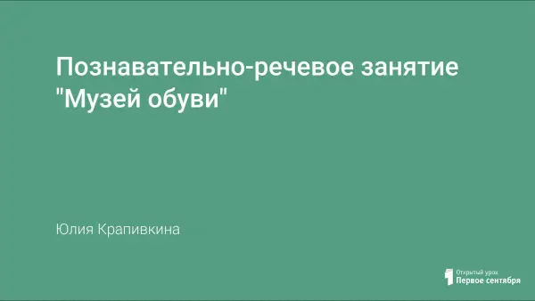 Познавательно-речевое занятие рассчитано на детей младшего дошкольного возраста, закрепляет знания детей о разнообразных видах обуви, ее назначении, о материалах, используемых при ее изготовлении. Учит различать детскую, мужскую, детскую обувь. Закрепляет знания детей . Развивает связную речь детей, расширяет словарный запас. Для закрепления знаний автор учит рисовать пальчиками. В занятии используются здоровьесберегающие технологии.