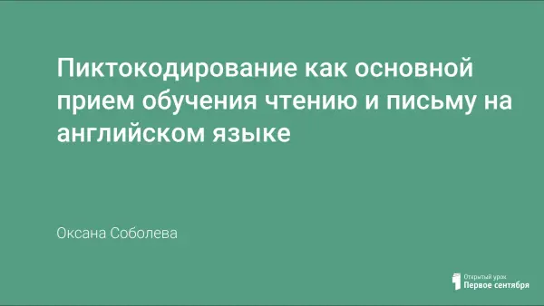 Одним из приемов, позволяющим сделать процесс обучения чтению и письму интересным, легким для восприятия и эффективным, является пиктокодирование. Пиктокодирование – эффективный метод обучения чтению и письму на английском языке. Его основным элементом является пиктограмма. Пиктограмма – своего рода закодированное письмо( рисунок), или, иначе, зрительная метафора, обозначающая не отдельные слова, а целые события.