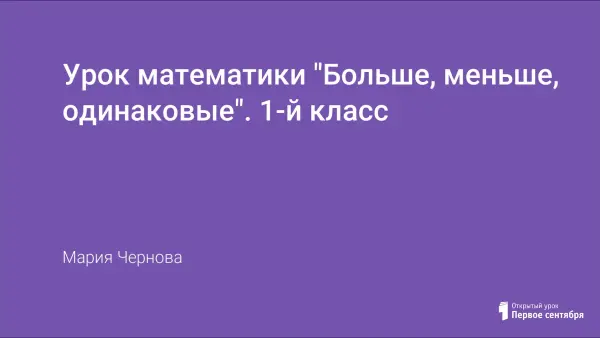 На данном уроке учащиеся упражняются в счете различных предметов; закрепляют умения сравнивать количество предметов, делать записи математических действий (сложение и вычитание) и количественного сравнения двух чисел в пределах 10; узнают смысловое значение слов «больше», «меньше», «столько же». Урок посвящен формированию познавательного интереса к предмету, чему способствуют красочное иллюстрирование урока и занимательные задания для развития логического мышления и внимания.