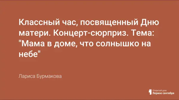 Мероприятие призвано воспитывать у учащихся уважение к родителям, чувство ответственности и сопереживания, содействовать развитию способностей каждого ребенка, формированию классного коллектива, развивать инициативу, творчество детей, вовлекать родителей в подготовку и проведение школьных дел.