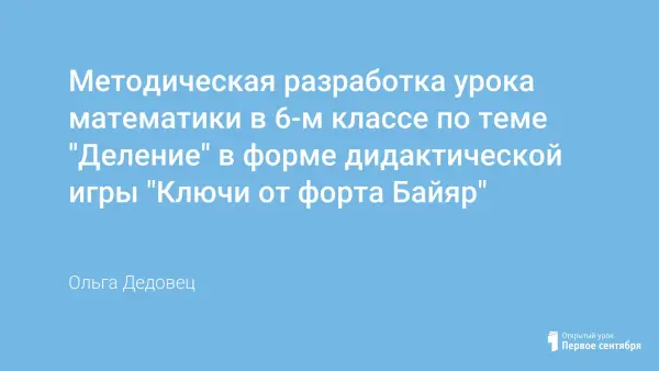 Урок по теме «Деление», проведенный в форме математической игры, позволит учителю увидеть уровень усвоения материала на каждом этапе урока и устранить пробелы у учащихся. На уроке в основном используется самостоятельная работа. Для поддержания интереса к предмету ребятам предложено несколько нестандартных задач олимпиадного характера.