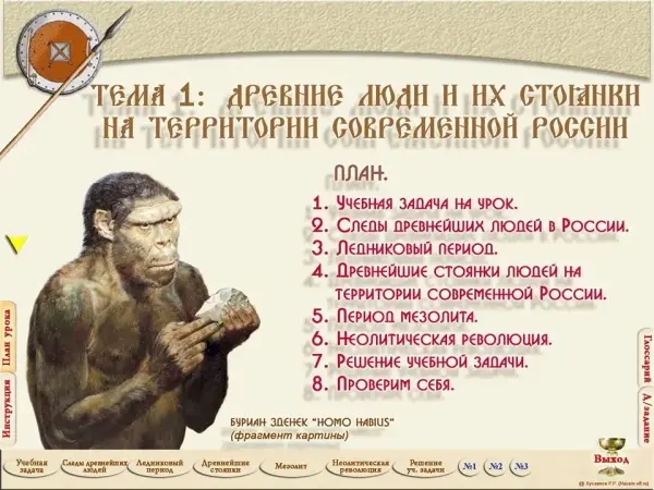 Урок истории России в 6-м классе по теме «Древние люди и их стоянки на территории современной России» с использованием интерактивной учебной презентации