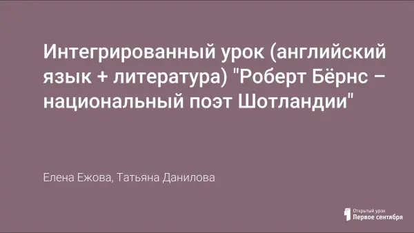 Интегрированный урок (английский язык + литература) "Роберт Бёрнс – национальный поэт Шотландии"