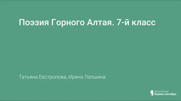 Цель урока: знакомство с легендами, поэтами, поэзией Горного Алтая; развитие умения выразительно читать лирические произведения; развитие навыков монологической речи; воспитание любви к родному краю.