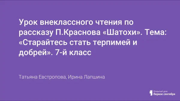 Урок внеклассного чтения по рассказу П.Краснова «Шатохи». Тема: «Старайтесь стать терпимей и добрей». 7-й класс