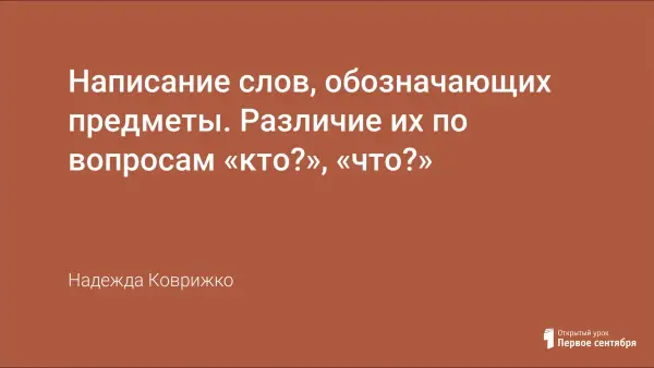 Цель урока: закреплять умения различать названия предметов по вопросам кто? и что?.