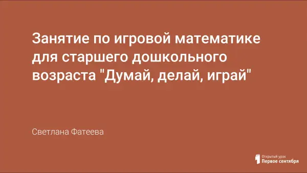 На примере конспекта занятия для старшего дошкольного возраста на закрепление счета в пределах десяти, порядковых числительных, решение и составление задач показано использование игры в обучении математике. Игры способствуют развитию наблюдательности, внимания, памяти, мышления, речи. Они видоизменяются по мере усложнения усвоенного дошкольниками программного содержания. Наглядный материал позволяет не только разнообразить игру, но и сделать ее привлекательной для детей.