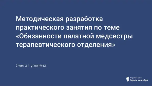 Данное занятие направлено на активизирование познавательной инициативы обучающихся: пробуждение интереса к будущей профессии. Тема занятия «Обязанности палатной медсестры терапевтического отделения» нашла оклик в сердцах студентов, т.к. связана с их будущей профессиональной деятельностью. Формой занятия по данной теме выбран урок-викторина. Такой тип занятия позволяет активизировать лексический и грамматический материал по данной теме, организовать самостоятельную работу студентов на уроке. Студенты делятся на команды и выполняют предложенные задания. Обучающиеся примеряют на себя роли медсестры и пациента, просматривают видеофрагменты о деятельности медсестры, высказывают предположения о качествах характера медсестры, объясняют критерии выбора своей будущей профессии.