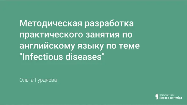 Урок «Infectious diseases» направлен на формирование профессиональных компетенций студентов медицинского профиля в изучении и обсуждении вопросов, связанных с инфекционными заболеваниями, средствами английского языка. Основной целью является развитие способности эффективно общаться на английском языке в ситуациях, характерных для профессиональной деятельности студентов медицинского колледжа. Студенты познакомятся с современной англоязычной терминологией, используемой в диагностике, лечении и профилактике инфекционных заболеваний, а также научатся применять полученные знания на практике. Особое внимание уделяется формированию грамматических навыков, необходимых для точного и четкого выражения мыслей в устной и письменной форме. Кроме того, урок способствует воспитанию межкультурной компетентности, ответственному отношению к здоровью пациентов и соблюдению международных санитарных требований. Практическая направленность занятия обеспечивает возможность приобретения важных профессиональных качеств, способствующих успешной интеграции молодых специалистов в мировое медицинское сообщество.