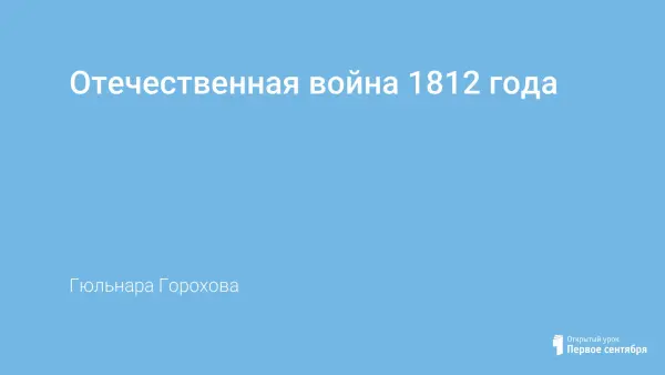Рассказ учителя о начале войны и беседа с учащимися по определению первых неудач русской армии в начальный период войны. Опережающие задания – сообщения учащихся о Смоленском сражении и Бородинской битве. Работа с картиной А.Д. Кившенко "Совет в Филях" и репродукциями о наполеоновских войсках в Москве. Рассказ учителя о партизанском движении и его героях. Работа с картой – освещение тарутинского маневра русской армии и изгнания "великой армии" из России.