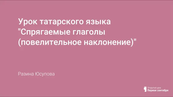 Урок татарского языка в 6-м классе. Цель данного урока: организовать деятельность детей по закреплению знаний о спрягаемых глаголах (повелительное наклонение); способствовать развитию умения распознавать спрягаемые глаголы; обогащать словарный запас учащихся через использование устного народного творчества.