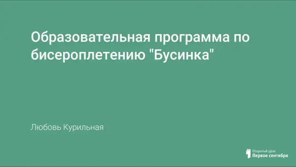 Образовательная программа "Бусинка", являясь прикладной, носит практико-ориентированный характер и направлена на овладение учащимися основными приемами бисероплетения. Данная программа может быть использована как дополнение к основным урокам труда или как самостоятельный предмет, а также дает возможность проявить себя как личность и раскрыть свой внутренний мир, побуждая ребенка к дальнейшему освоению народного творчества.