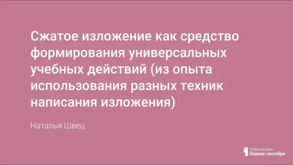 Сжатое изложение как средство формирования универсальных учебных действий (из опыта использования разных техник написания изложения)