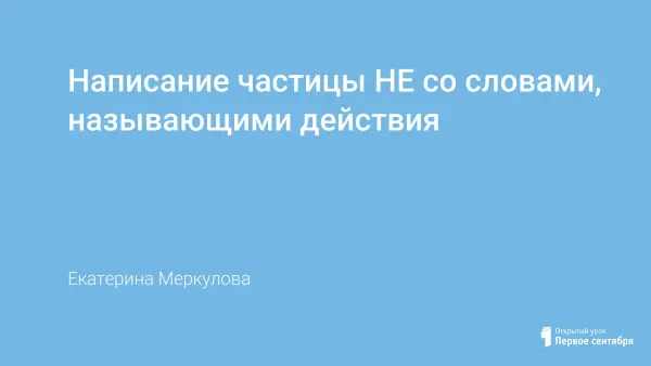 Цель урока: формирование представления о написании частицы НЕ со словами, называющими действия.