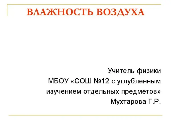 Цели урока – обеспечить усвоение понятия "влажность воздуха"; показать практическое применение и важность данной физической величины.
