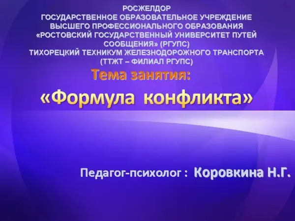 В статье учитываются психологические особенности подростков. Занятие помогает лучше понять сущность, динамику, причины, функции конфликта, показывает способы и приемы предотвращения возможных конфликтных ситуаций.