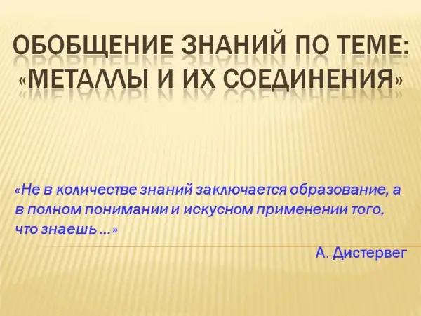 Урок-обобщение по теме "Металлы и их соединения"